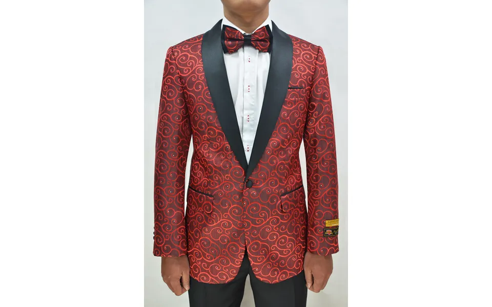 Lapel:satin shawl collar. Fit:modern fit suit. Button:1- cover button. Suit pattern:paisley pattern. Pocket:flap pocket. Chest pocket:1- chest pocket. Suit stitching:interior pic-stitching Brand: AlbertoNardoniStore
