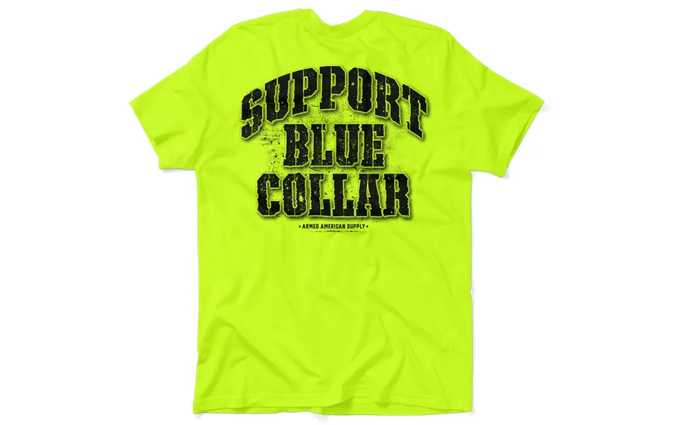 Support blue collar Safety yellow t-shirt. Spreading laughter & pride across blue collar job sites nationwide.. Our 30-day guarantee, quality & customer service is second...show more