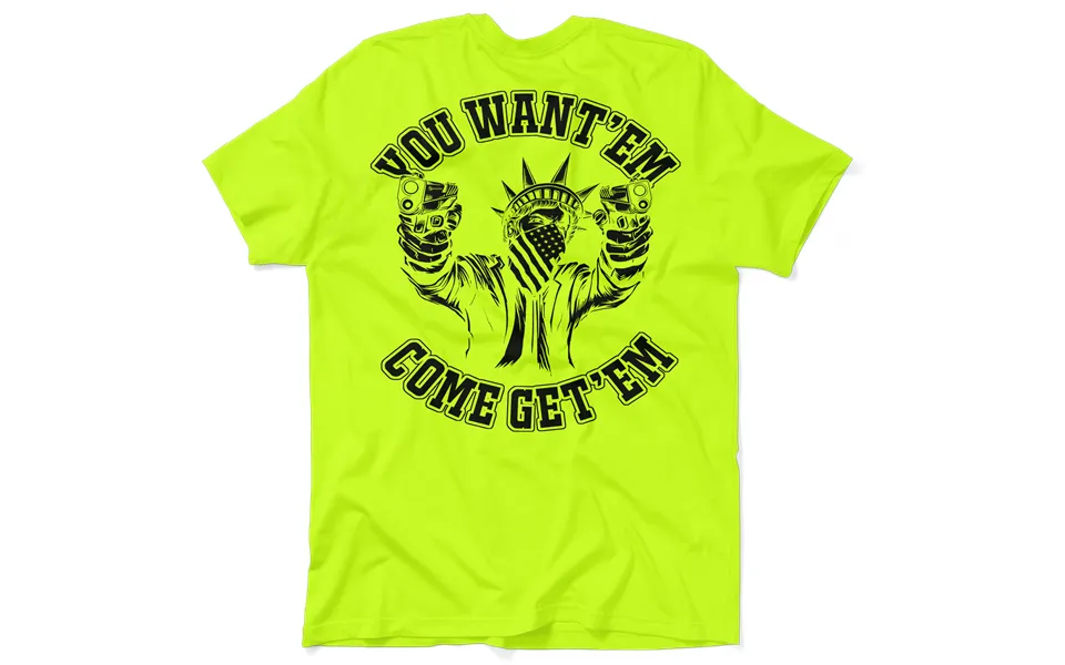 Come get'em Safety yellow t-shirt. Spreading laughter & pride across blue collar job sites nationwide.. Our 30-day guarantee, quality & customer service is second to...show more