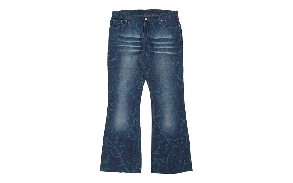 Description:vintage versace jeans couture blue jeans, fit a uk size 10 Mid rise with a 32 waist. Notes: metallic blue dots creating branch like patterns...show more