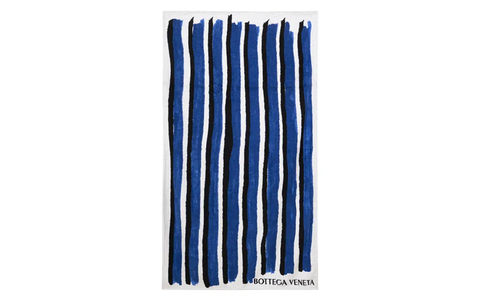 Telo mare a righe bottega veneta.A righe blu, nere e bianche con logo stampato a contrasto.Misura in cm: 190 x 166composizione: 100% cotonesku interno: 25giu104sku...show more