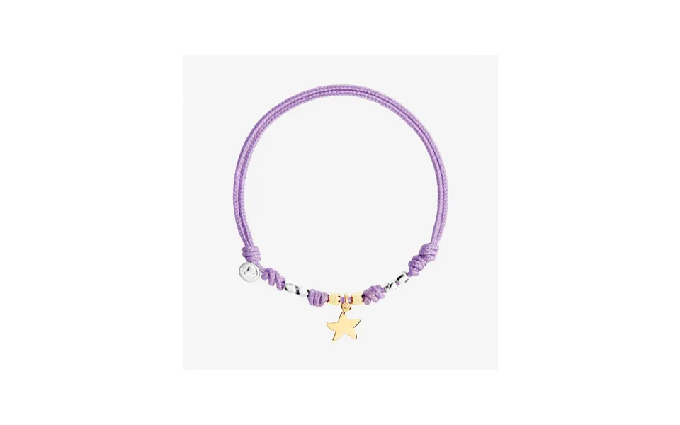Bracelet with charm stellina mini model in 18k yellow gold, four mini grains in 925 silver and two mini 18k yellow gold granules, lilac cord...show more