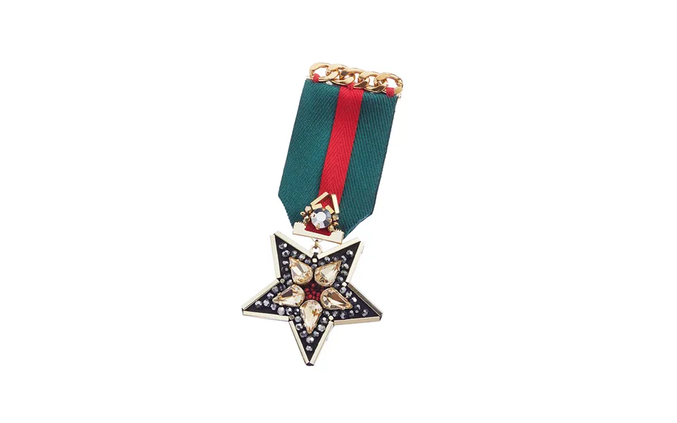 Golden metal spill star model with yellow zirconia and black zirconia with fabric.Length 12 Brand: ottaviani