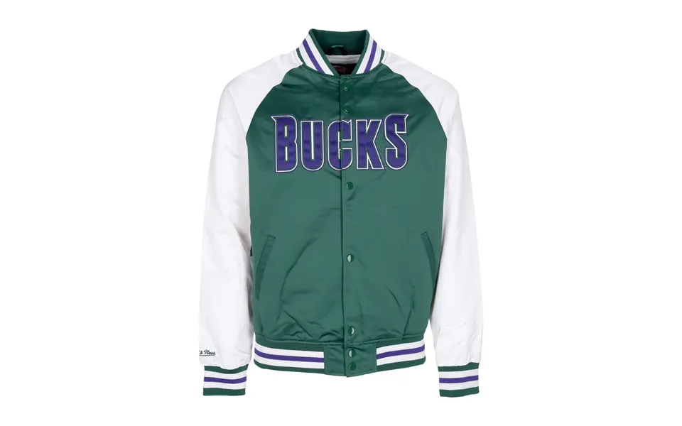 Bomber jacket with typical collar, ribbed collar cuffs and hem, translucent material, one inside pocket and two side pocketspoussoir closureregular fitcelebrating the milwaukee bucks basketball...show more