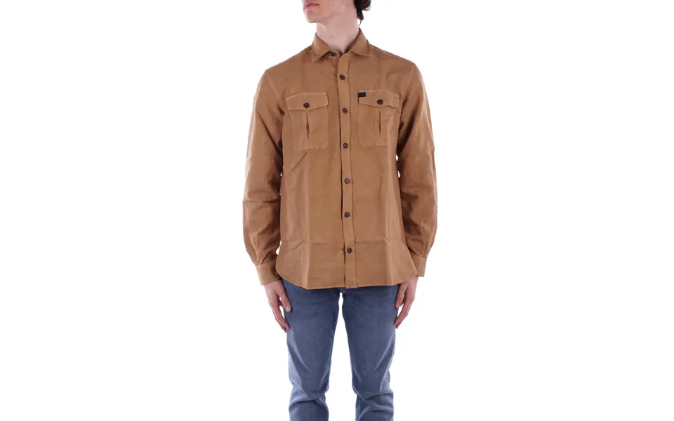 Camicia uomo fay chiusura con bottoni frontale due tasche frontali con bottoni altezza modello : 1.83 Cm taglia indossata : 40 composizione : 100% lino...show more
