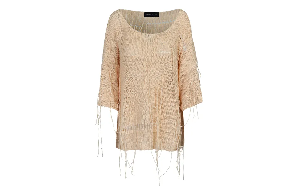 450005 Cypria Maglia in cotone. Scollo a barchetta. Spalle scivolate. Maniche corte. Frange a cascata. Dettagli traforati. Taglio dritto. Composizione tessuto: 66% cotone,34% poliammide. Vestibilita:...show more