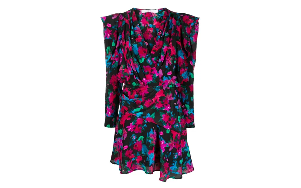 Short printed model, long sleeves, crossed v-neck, fitted waist, side zip closure, ruffles on the shoulders. Composition 100% silk Brand: iro