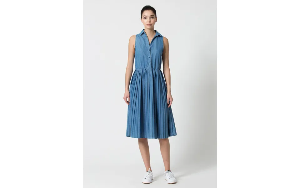 Midi dress in sleeveless denim to make your outfit fresh for a trendy casual look. Lapel collar with buttons up to the waist and the...show more