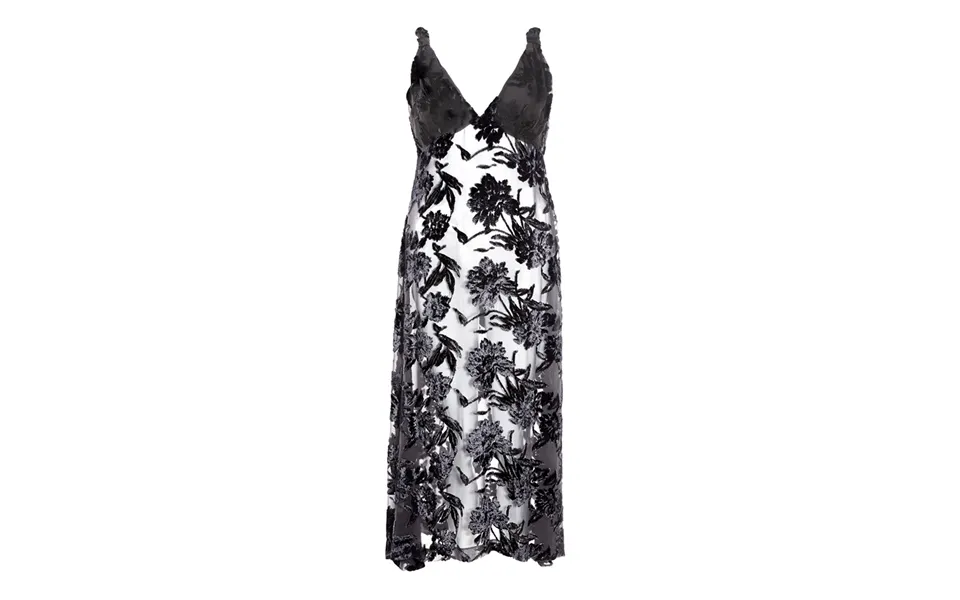 Long dress in tulle with flower print velvet lardini black. Sleeveless with shoulder straps, v neckline, zip closure on the side, seam under the chest....show more