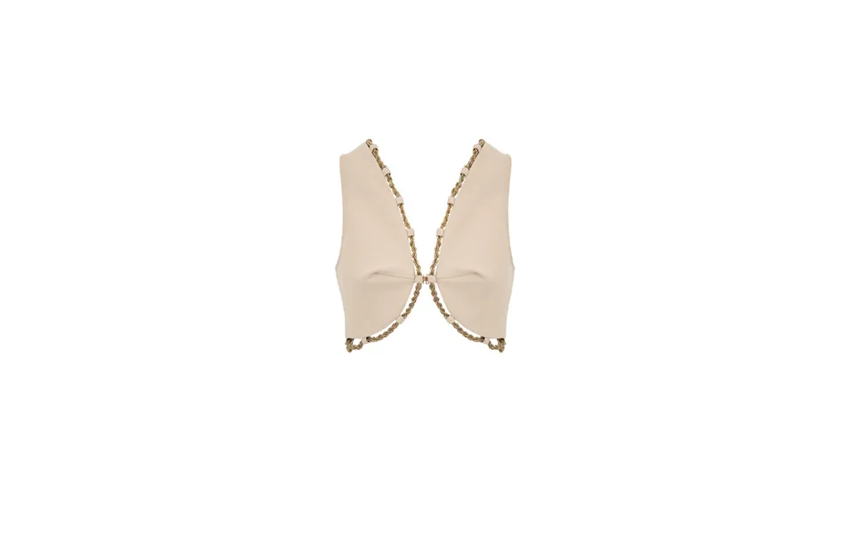 Gilet in cotone cipria con bordo in catena gold cult gaia.Forma classica, senza chiusura, bordato con catena gold metallica con lavorazione intreccio. Fodera in cotone.Composizione:...show more