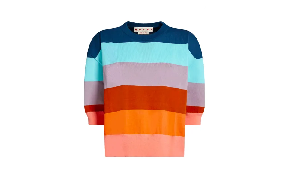 Multicolor model, cotton blend, horizontal striped pattern, fine knit, crew neck, 3 4 sleeves and straight hem. Composition cotton 90%, polyamide 10% made in italy ...show more