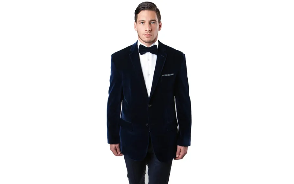 Mens navy blue wedding tuxedo. Dark blue tuxedo suit. Wedding suit. Prom suit. Pants is included. 2 Button closure. This modern fit velvet tuxedo features...show more