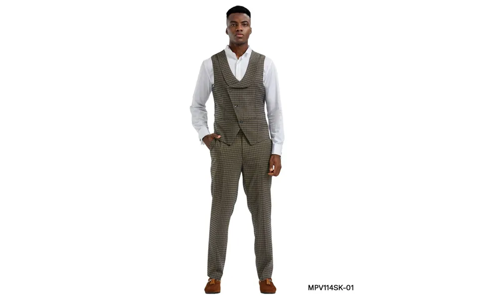 Key features:. Sleek and stylish skinny fit suit. Diagonal vest with unique shawl lapel. 3 Button closure. Rich blended fabric. Perfect for special occasions. Revamped...show more