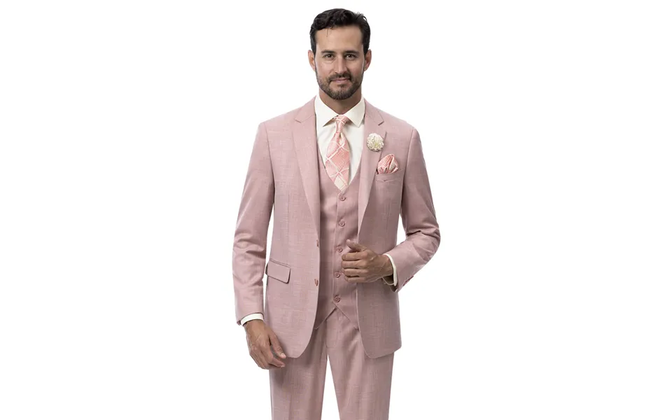 Sharkskin Business Suit - Mens Modern Fit Two Button Vested In Mauve Pink