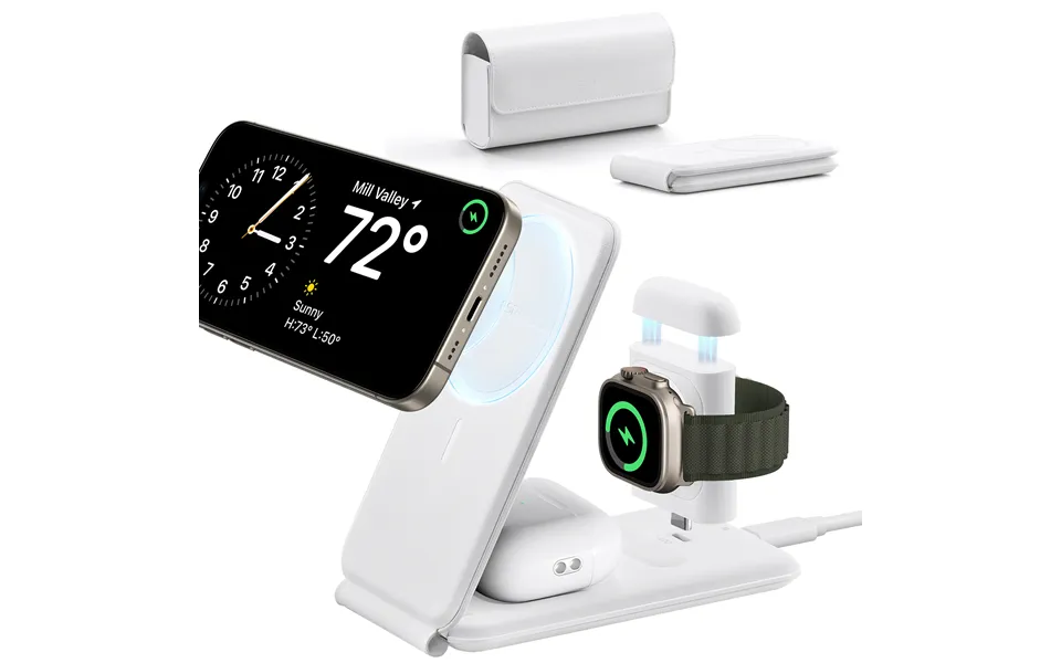 Foldable and portable multi-device magnetic wireless charger for iphone and airpods with a removable made for apple watch charging donglefoldable and portable multi-device magnetic wireless...show more