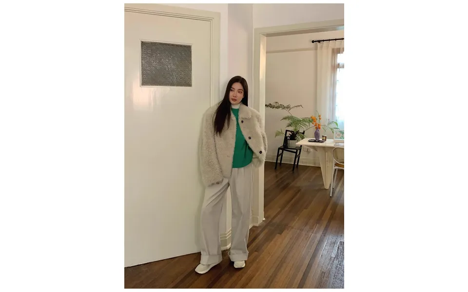 Merino banana sleeve lapel straight coat fabric spanish imported merino sheepskin accessories: horn button*3pcs matching color bag cloth lightly coated sheepskin art.No.Fzn22pc033 color cloud coffee...show more