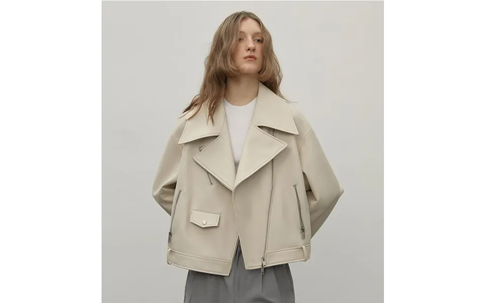 Retro high-street motorcycle style loose-fit leather jacket with drop shoulders the straight silhouette combined with dropped shoulders and the retro motorcycle style creates a rugged...show more