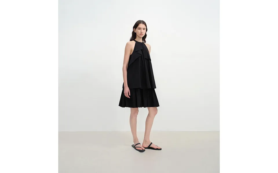 Design small stand-up collar halter neck asymmetrical dressunique small grain textured cotton fabric, wide and stylish, skin-friendly and breathable, rich visual layers, halter neck shape...show more