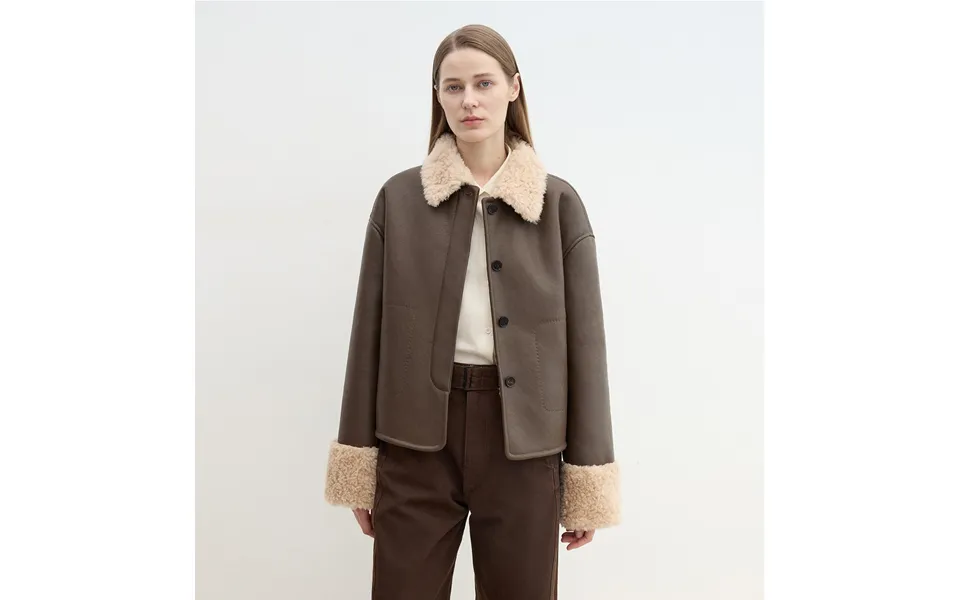 The delicate and thick sheepskin lining is dense and warm, and the genuine leather-like pu leather surface presents a high-end luster. The loose straight fit...show more