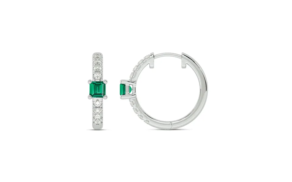 Sparkling lab-grown diamonds dance around a celestial princess cut emerald in these gorgeous 14k white gold earrings. A cascade of round diamonds culminates in a...show more