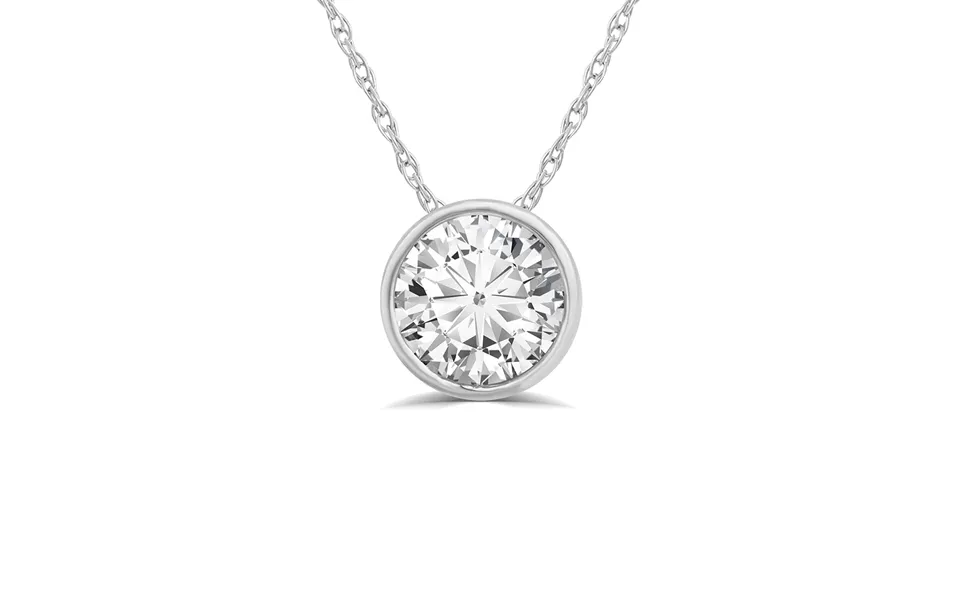 Bezel-set in 14k white gold for extra security, this necklace with its carefully chosen scintillating diamond is a classic that will be passed down through...show more