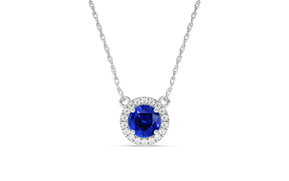 Elevate your neckline with the 10k white gold dynasty halo necklace. A 6.5 Mm round sapphire, bathed in the brilliance of a diamond halo, creates...show more