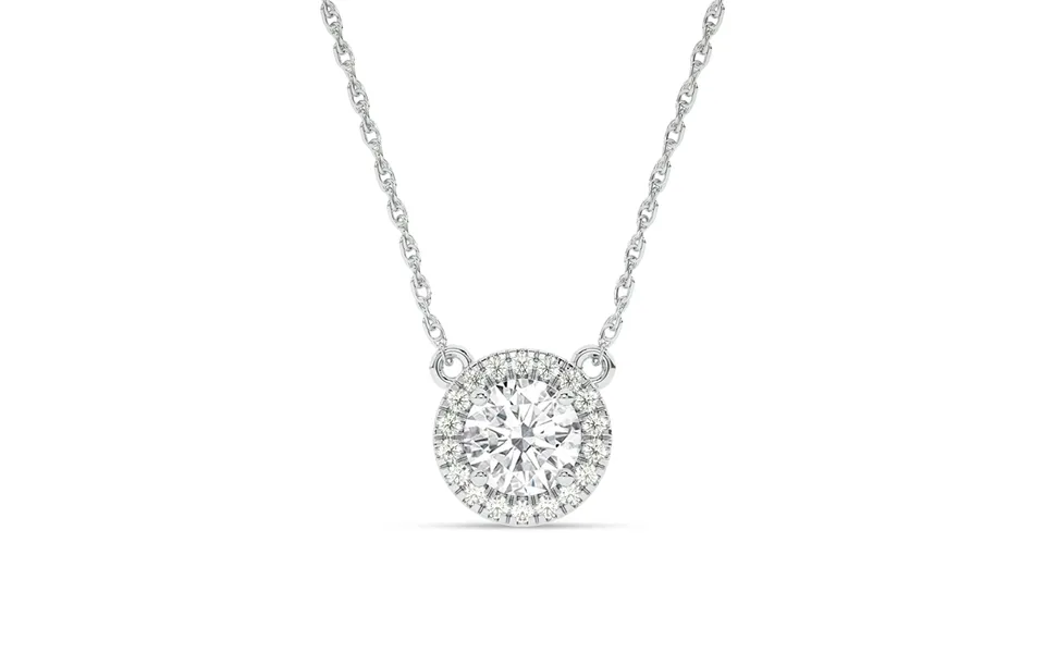 Elevate your neckline with the 10k white gold dynasty halo necklace. A 2 carat round diamond, bathed in the brilliance of a diamond halo, creates...show more