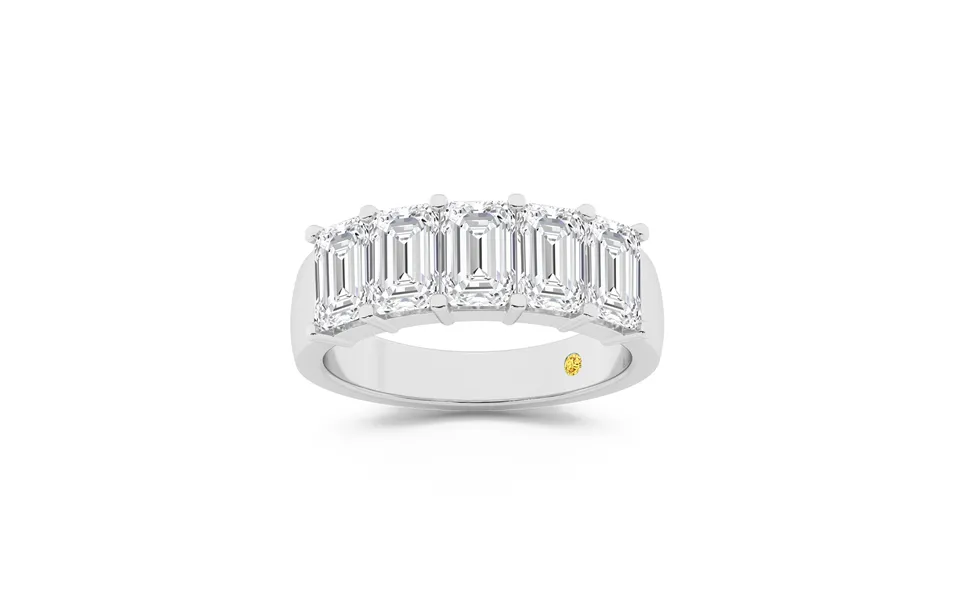 Elevate your style with the ciel shared prong five stone ring. This exquisite 2 carat band showcases five dazzling emerald-cut diamonds, each held securely by...show more