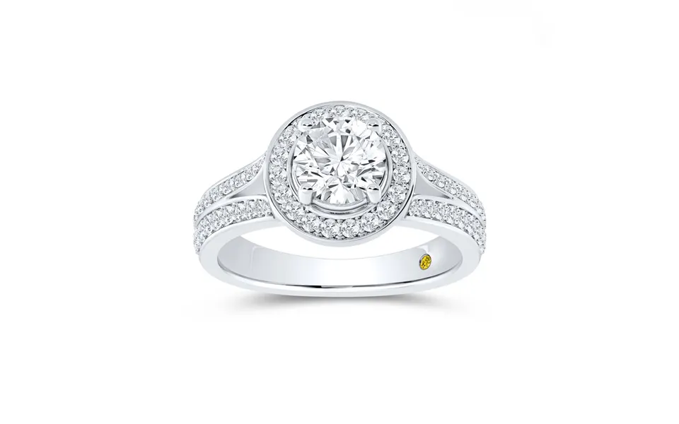 This magnificent ring in pure solid gold features a scintillating 3 4 carat lab created diamond surrounded by a sparkling diamond halo placed perfectly on...show more