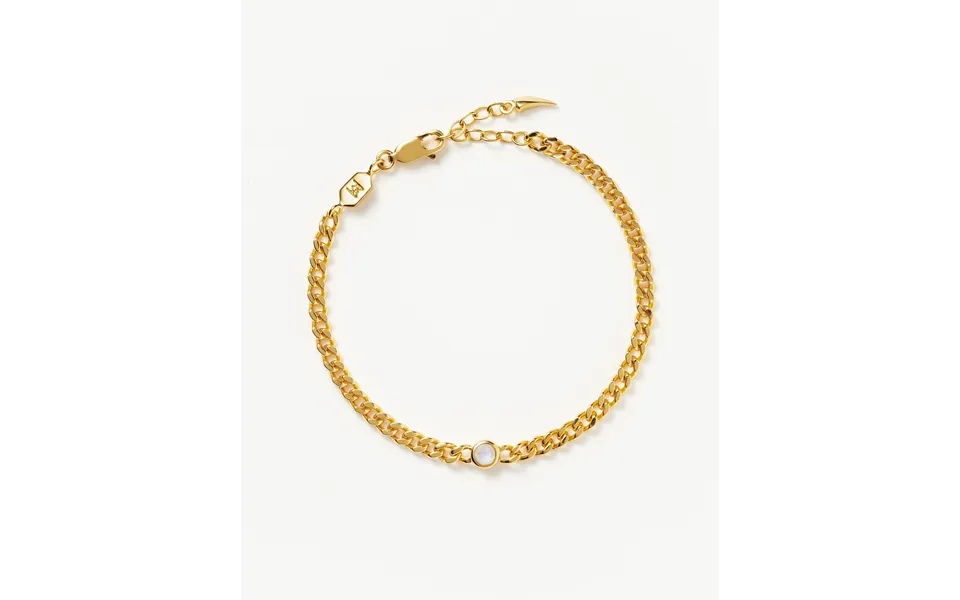 Wear your month on your sleeve with a personalized bracelet. The bezel-set natural rainbow moonstone gemstone is held onto a delicate curb chain, a stone...show more