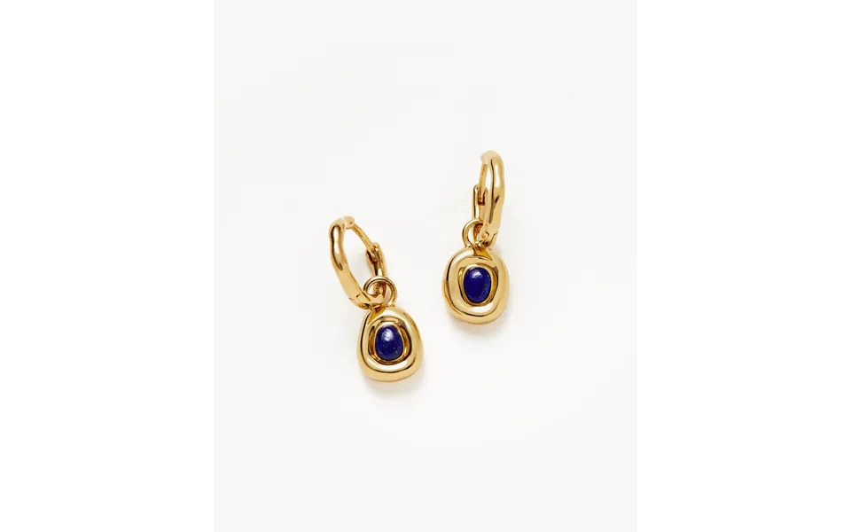 These small charm hoops feature lapis gemstones symbolising strength and courage suspended from small molten hinged hoops. Two earrings in one, you can remove the...show more