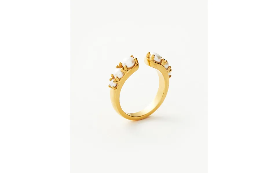 An ornate stacking ring with graduated white pearl prong set cabochons that lend a touch of opulence to the band. Wear this intricate style solo...show more