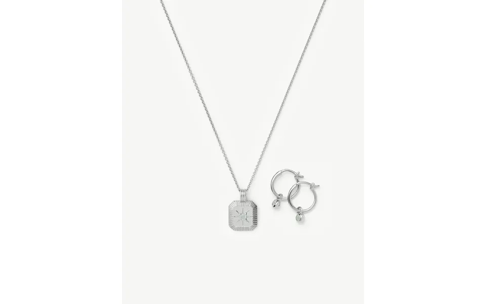 Celebrate in style with this ultimate birthstone duo. Teamed together, our best selling march birthstone pendant necklace & march birthstone mini charm hoop earrings. The...show more