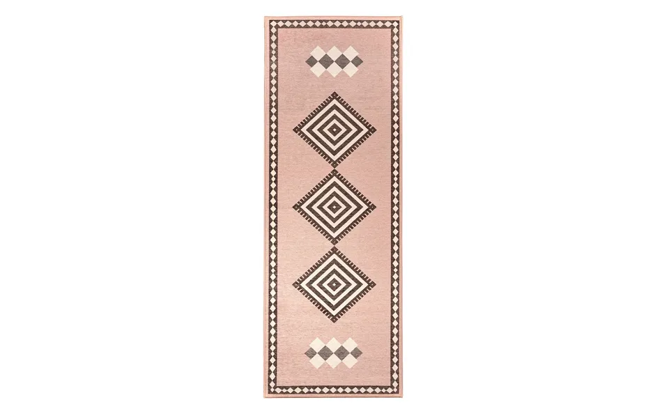 This attractive persian-style rug features a bold geometric pattern in a color combination of pink, grey, and white. The design consists of intersecting diamonds and...show more