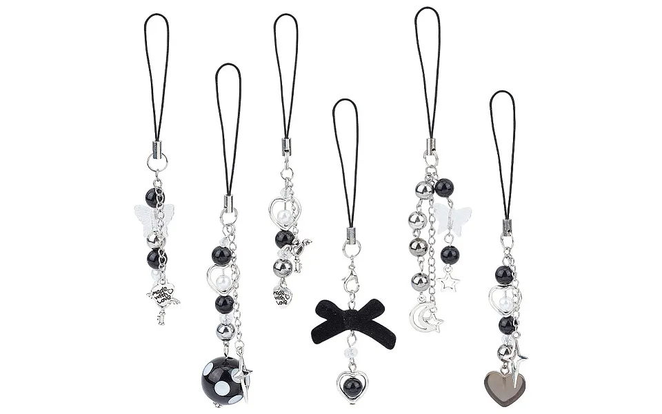 Polyester cord mobile accessories decoration, heart moon star key, black, 11.2-14Cm, 6pcs set Brand: PandaHall Type: Mobile Accessories