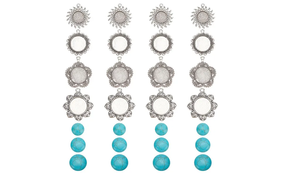 Diy pendant making kit, including flower alloy pendant cabochon settings, synthetic turquoise cabochons, antique silver size: about sunflower: tray: 20mm, 34x30.5X3mm, hole: 2.3Mm, 4pcs flat...show more