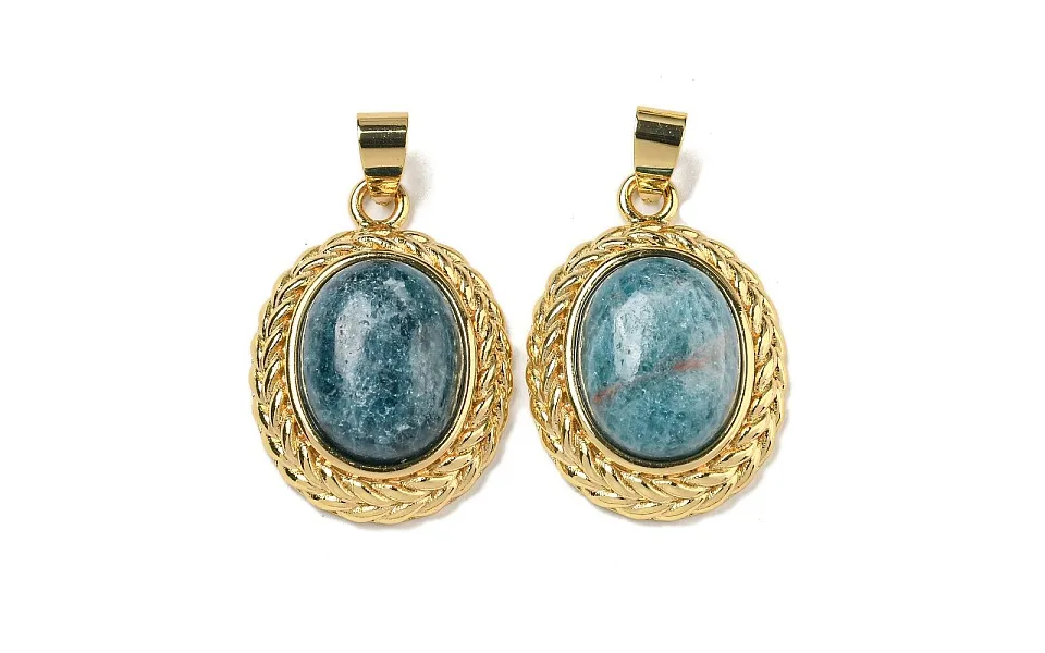 Natural apatite oval pendants, rack plating brass gems charms, golden, size: about 19.5Mm wide, 27.5Mm long, 8mm thick, hole: 5x4mm. Brand: PandaHall Type: Gemstone Pendants
