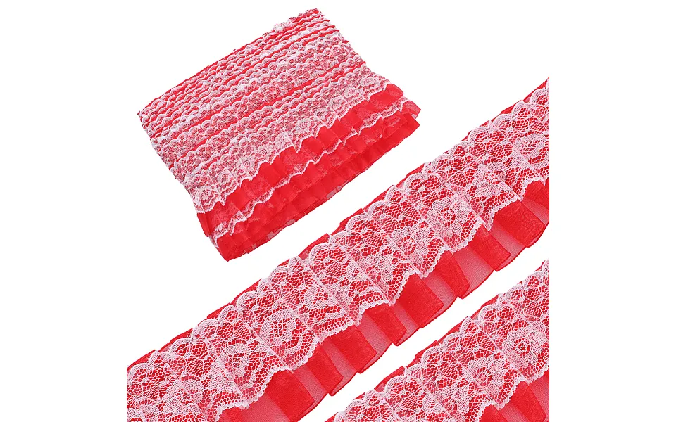 Polyester ribbon, wave edge ornamnent, ruffle lace trimming, costume dress accessories, red size: about 50mm wide, 1mm thick. Brand: PandaHall Type: Ornament Accessories