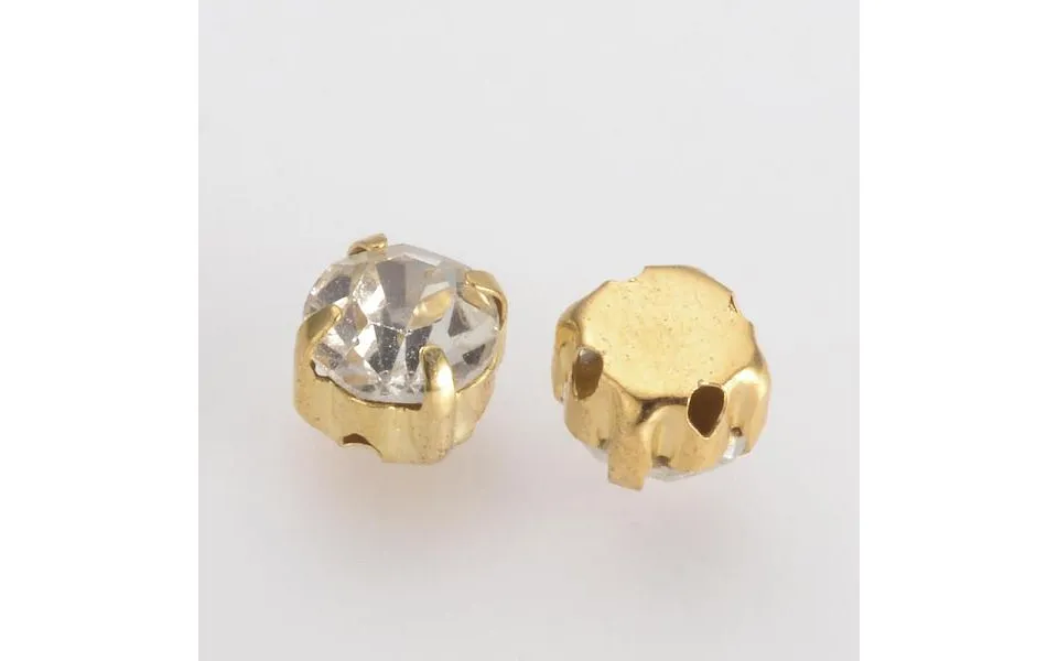 Glass rhinestone, montee beads, with brass prong settings, garments accessories, flat round, golden, 4.3X4mm, about 1440pcs bag