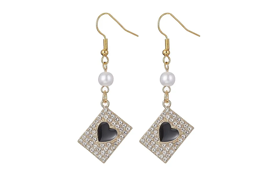 Alloy crystal rhinestone rectangle with heart dangle earrings, imitated pearl acrylic beaded drop earrings with enamel, black size: about 18mm wide, 47 55mm long. Brand:...show more