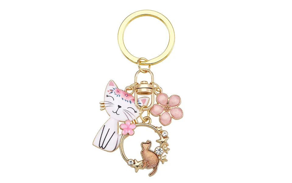 Alloy enamel keychain, cat, golden size: about 74mm long, pendant: 17 30mm. Brand: PandaHall Type: Keychains