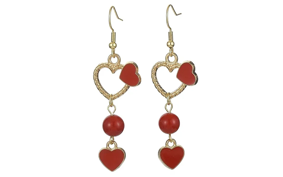 Dyed natural mashan jade dangle earrings, alloy enamel heart long drop earings with 304 stainless steel pins for valentine's day, dark red size: about 0.71...show more
