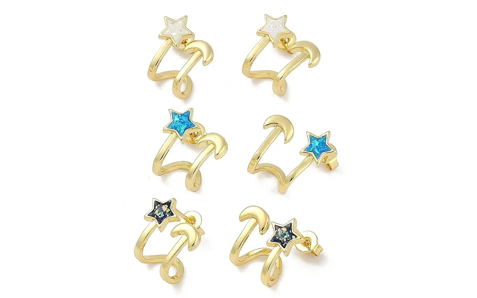 Rack plating star brass stud earrings, with synthetic opal, cadmium free & lead free, long-lasting plated, real 18k gold plated size: about 15mm wide, 17mm...show more