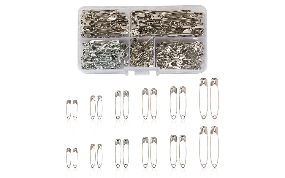 220Pcs 6 style iron safety pins, platinum size: about safety pins: 26 28x6x2mm, pin: 0.5Mm, 50pcs safety pins: 22x5x2mm, pin: 0.3Mm, 50pcs safety pins: 36...show more