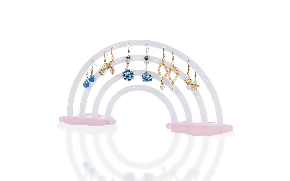 Acrylic jewelry earring display stands, rainbow earring organizer holder with pink cloud base, white size: finished product: 14.6X30.5X7cm half round: 28cm wide, 14.6Cm long, 0.4Cm...show more