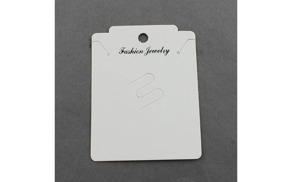 Cardboard necklace display cards, rectangle, white size: about 79mm long, 61mm wide, 0.5Mm thick. The display card is used to put jewelry for keeping firm...show more