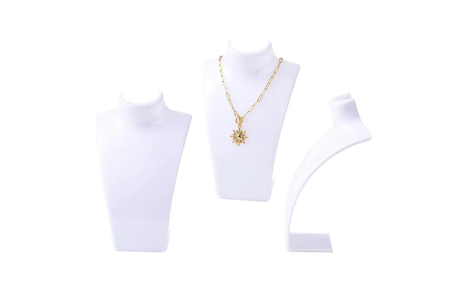Organic glass necklace & earring standing bust displays, white size: about 135mm wide, 210mm high, 64mm thick. We offer you these jewelry displays. You can...show more