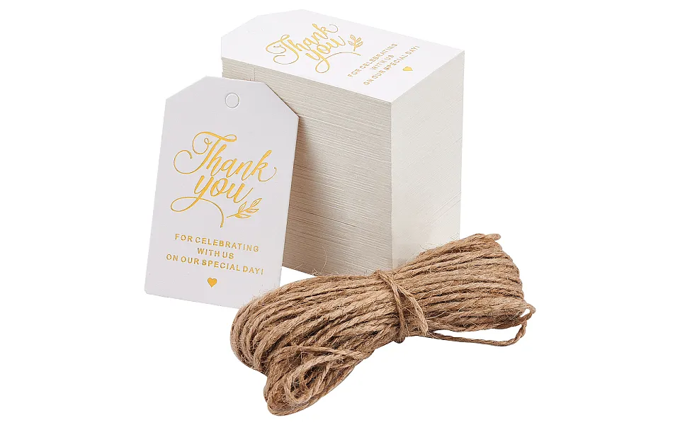 With hemp ropes, word pattern thank you, rectangle, white, 79x50x0.5Mm, hole: 5mm, 200pcs Brand: PandaHall Type: Price Tags