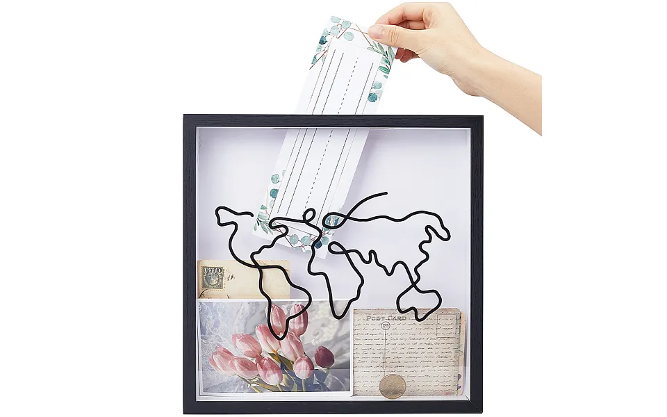 Square wood wall mounted stamp storage boxes with clear acrylic window, for travel ticket storage, black size: about 290mm wide, 290mm long, 45mm thick. Brand:...show more