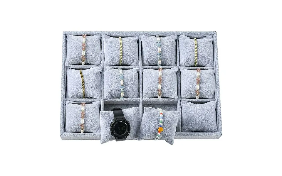 Wood covered with velvet jewelry bracelet watch displays, 12 compartments, with pillows, gray size: about 24cm wide, 35cm long, 5cm high, small pillow: 6.8X6x4.3Cm. Brand:...show more
